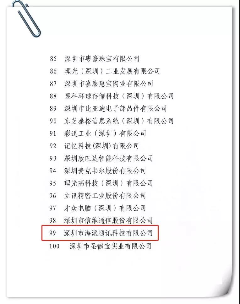 深圳市工業和信息化局、深圳市統計局經過嚴格的分析統計評選,于近日聯合公布了2018年度深圳市工業百強企業,深圳海派得以榮登榜單。