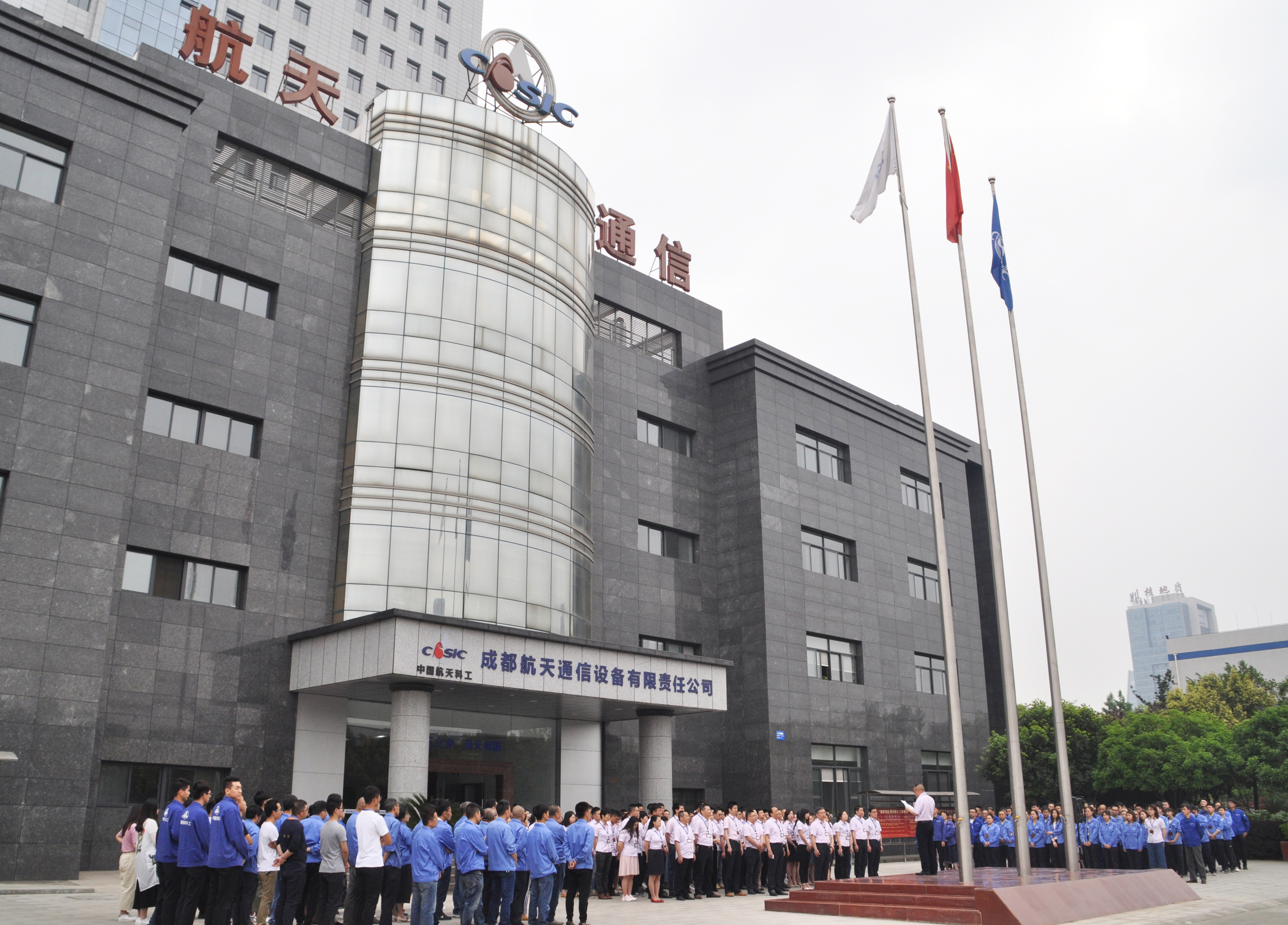 成都航天圍繞“逐夢航天 合作共贏”主題舉行升旗儀式。公司領(lǐng)導(dǎo)班子、中層干部、團員青年、職能部門全體人員以及部分事業(yè)部、制造部員工約300人英姿颯爽,整齊列隊。在激昂的國歌聲中,五星紅旗冉冉升起,在雄壯有力的《航天科工之歌》中,藍、白色的集團公司司旗隨風(fēng)舞動,彰顯了我國航天事業(yè)的蒸蒸日上。
