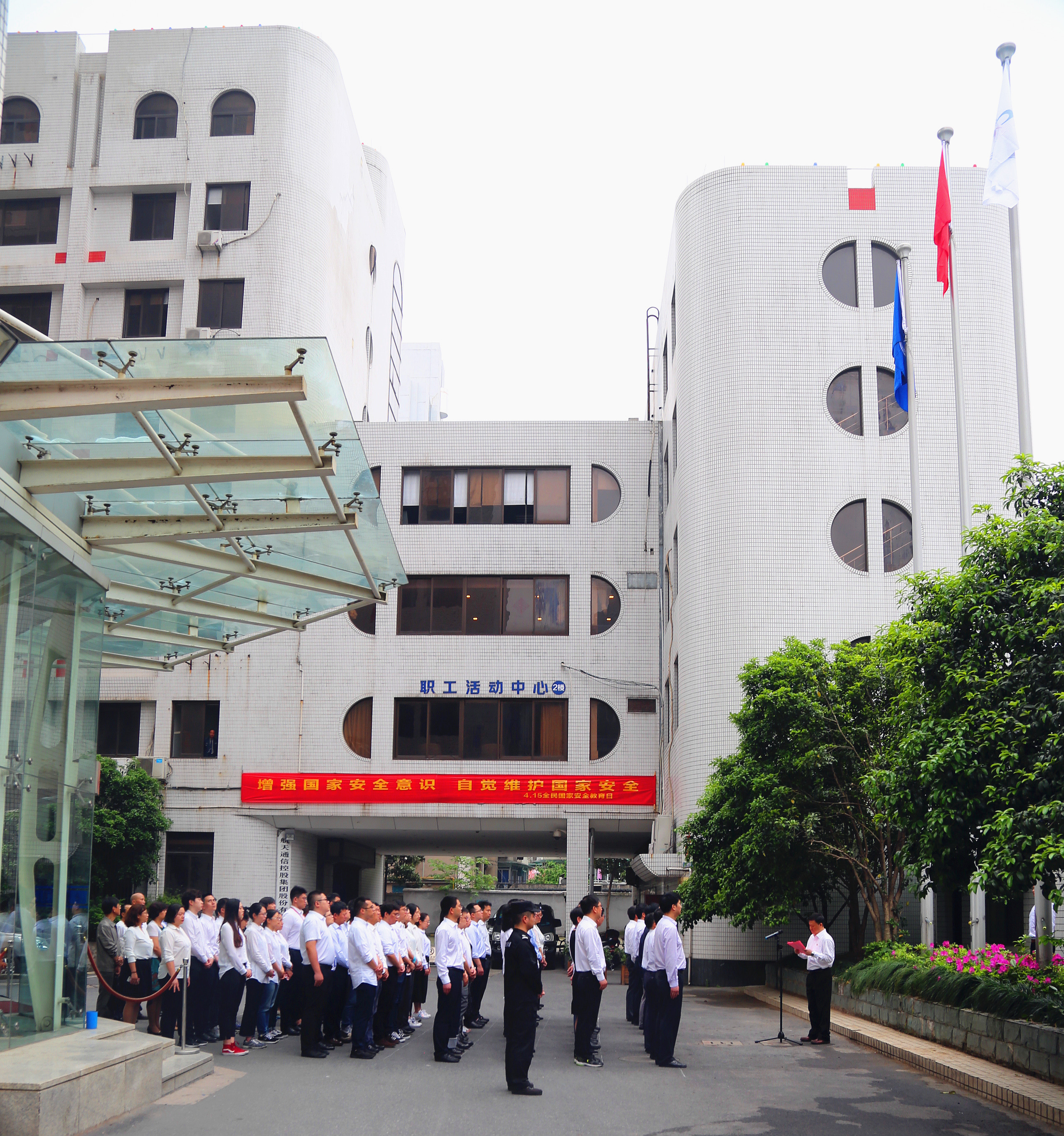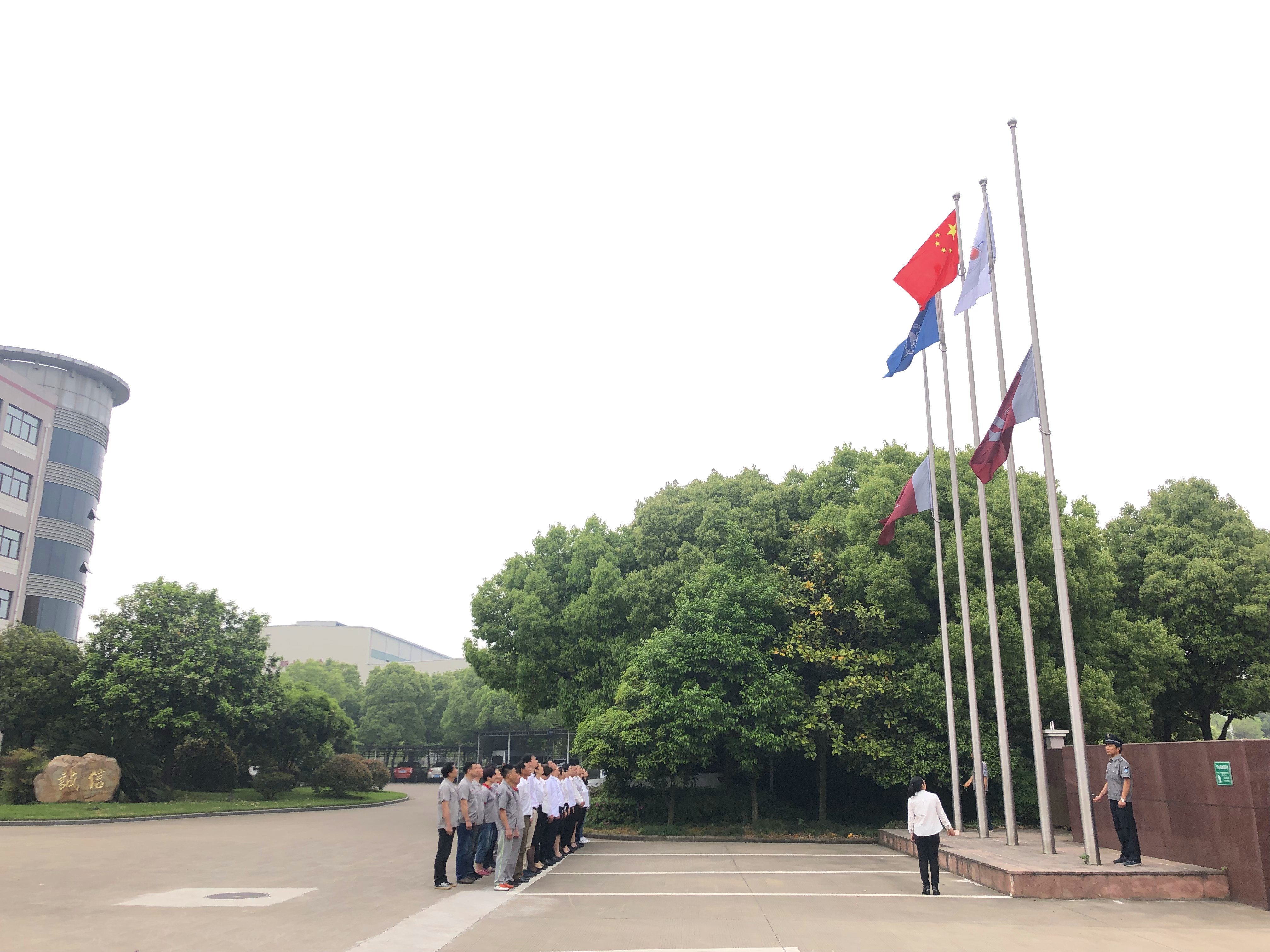 寧波中鑫領(lǐng)導(dǎo)班子與全體在崗黨員、預(yù)備黨員及職工代表,在公司本部辦公大樓前隆重舉行升旗儀式,慶祝第四個“中國航天日”。迎著朝陽,經(jīng)濟民警護衛(wèi)著五星紅旗、中國航天科工司旗來到旗桿下。伴隨著雄壯的《中華人民共和國國歌》、《中國航天科工集團公司司歌》,鮮艷的五星紅旗、中國航天科工司旗冉冉升起。