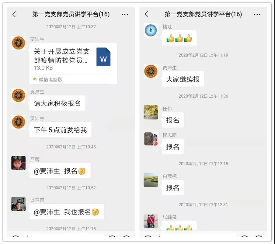 江蘇捷誠第一黨支部由人事政工部和行政保衛部兩個部門組成,共有黨員12名。正值春節假期,黨支部書記賈沛生在黨員群里發布了一條動員信息:“公司黨委為了更好地應對疫情防控工作,要成立一支黨員疫情防控突擊隊,希望大家踴躍報名”。隨即,手機的提示音“滴滴”地響個不停,報名加入的消息不間斷的回復。在急難險重的任務面前,支部黨員同志們選擇義無反顧地投身到抗擊疫情工作中,全力支持企業疫情防控大局。