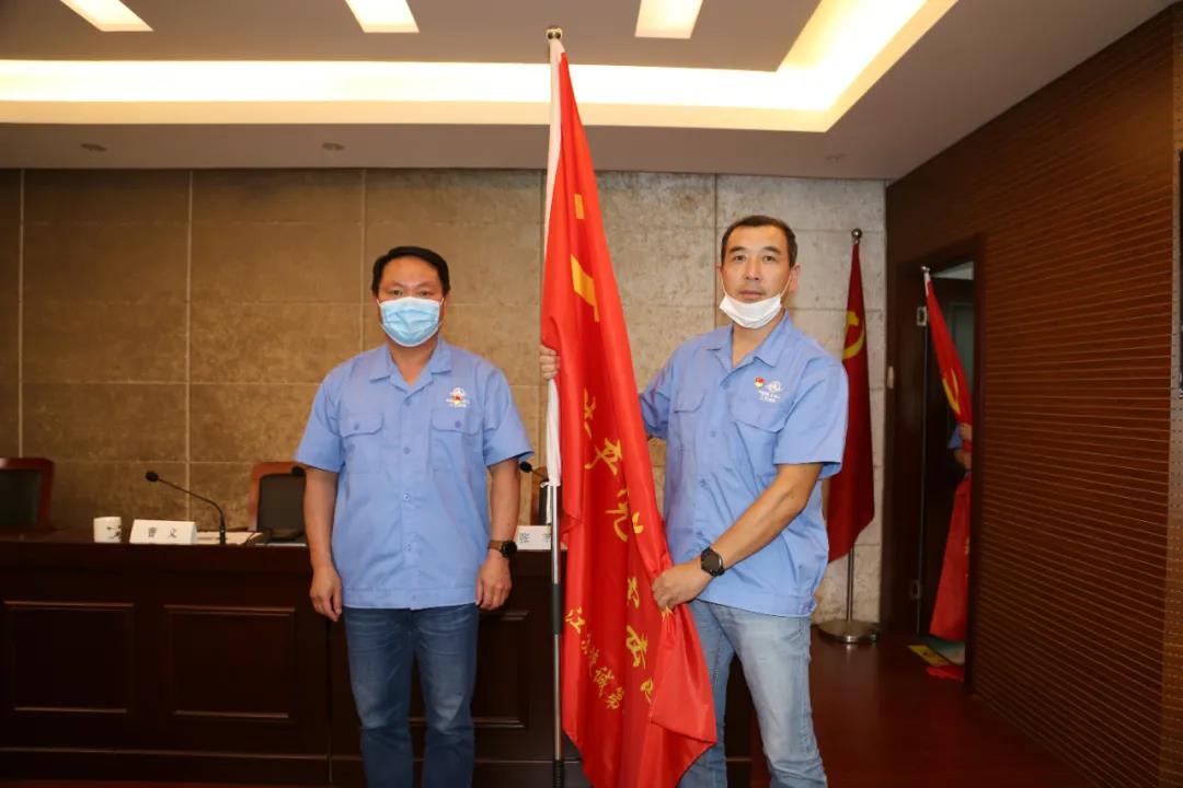 ▲江蘇捷誠黨委為一支部黨員突擊隊授旗