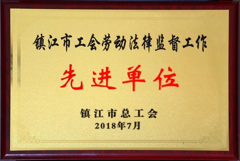 近日,江蘇捷誠工會榮獲鎮江市首批20家工會勞動法律監督工作先進單位稱號。